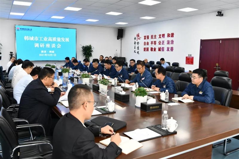 10月1日,國慶節(jié)當(dāng)天,韓城市委書記亢振峰,市委常委、常務(wù)副市長張景鋒帶領(lǐng)發(fā)改委、工信局、自然資源局、經(jīng)開區(qū)、龍門鎮(zhèn)等部門負(fù)責(zé)人到公司進(jìn)行工業(yè)高質(zhì)量發(fā)展調(diào)研,并召開座談會。公司領(lǐng)導(dǎo)陳驍、劉安民、馮偉、王建軍及相關(guān)部門負(fù)責(zé)同志陪同調(diào)研。