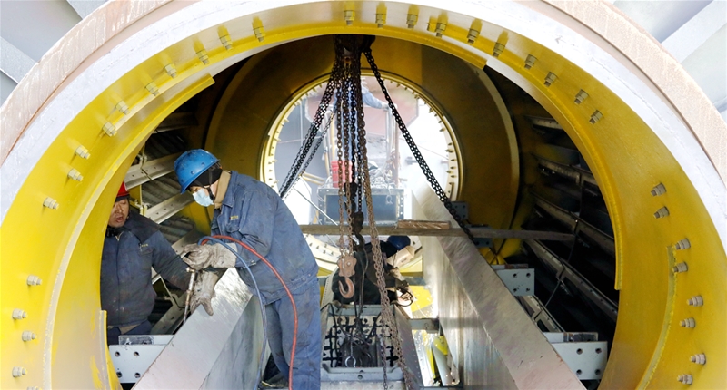 “我用鐵錘敲打,你用扳手使勁。”“師傅,搭把手!一二,一起用力……”在他們的齊心協(xié)力配合下,一顆顆螺栓掉落在地的聲音猶如天籟之音。他們合力拆卸、吊運(yùn)、更換,各司其職,團(tuán)結(jié)協(xié)助此刻在這里得到了充分體現(xiàn)。