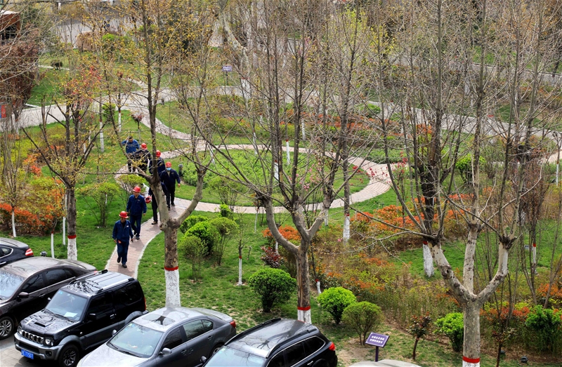 圖四:午后,職工們紛紛走出辦公室,活動活動筋骨,感受春日里的美好,享受運動帶來的快樂。