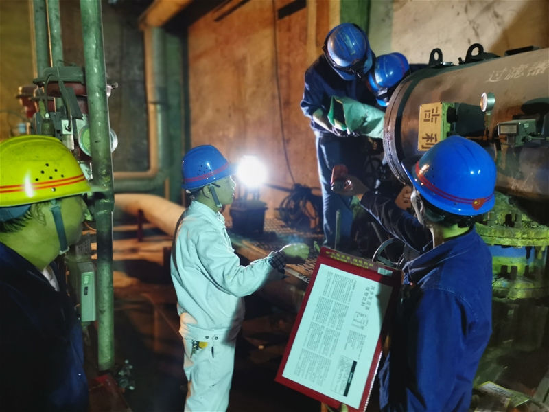 “今天的檢修只有兩個(gè)小時(shí),大家的任務(wù)已經(jīng)明確,停機(jī)后迅速行動(dòng),必須在規(guī)定時(shí)間內(nèi)高質(zhì)量完成檢修工作。”即將停機(jī),連二作業(yè)長(zhǎng)王小慶強(qiáng)調(diào)道。