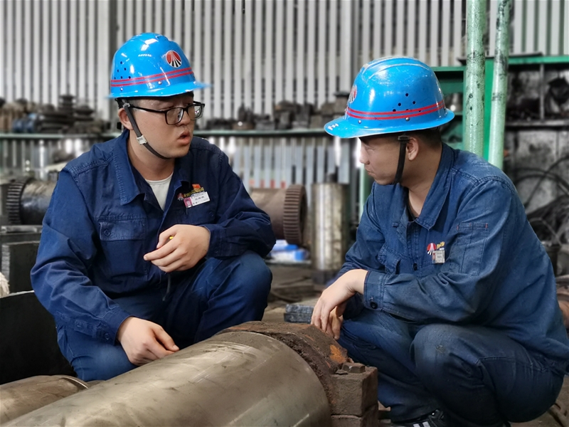 因軋線定期檢修使鋼坯在加熱爐內(nèi)停留時間較長,造成鋼坯兩頭彎曲,導(dǎo)致鋼坯出爐易碰撞到出爐輥道軸承座上發(fā)生卡鋼、傾斜,影響生產(chǎn)節(jié)奏。為解決這一難題,該單位技術(shù)人員主動作為,經(jīng)現(xiàn)場實(shí)際測量,發(fā)現(xiàn)推鋼機(jī)每次拖鋼時,彎曲的鋼坯兩端最低點(diǎn)和鋼坯中間的最高點(diǎn)相差20公分,導(dǎo)致拖鋼碰到出爐輥道軸承底座發(fā)生卡鋼。為此,技術(shù)人員與維修人員協(xié)同配合,利用廢舊鋼板將推鋼機(jī)前端加高20公分,有效解決了鋼坯出爐卡鋼、傾斜的問題。此舉,大幅降低人員勞動強(qiáng)度,月綜合創(chuàng)效4萬元。