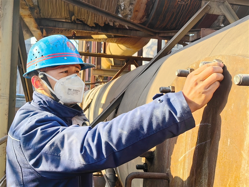 “滴噠噠,滴噠噠……”風(fēng)鎬的陣陣沖擊聲從渣處理熱水池傳來(lái)。站在6米深的熱水池邊,渣處理主操鬲敏學(xué)正手持風(fēng)鎬,瞄準(zhǔn)那塊最高最硬的黏結(jié)積渣,屏息凝氣,三下五除二將堅(jiān)硬的積渣擊碎。