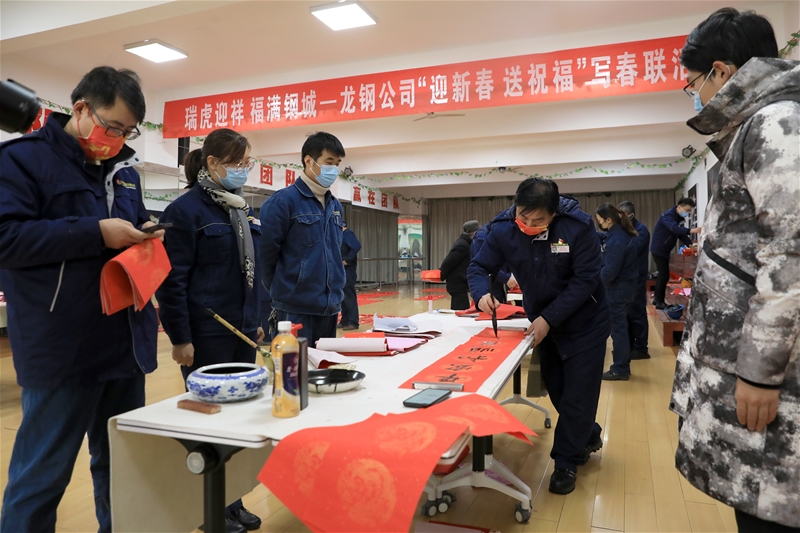 丑去寅來千里錦,牛奔虎嘯九州春。為弘揚(yáng)中華傳統(tǒng)文化,營造喜慶祥和的節(jié)日氛圍,1月18日-20日,由公司工會主辦、書畫協(xié)會承辦的“瑞虎迎祥 福滿鋼城”——龍鋼公司“迎新春、送祝福”寫春聯(lián)活動在職工活動中心圓滿完成。