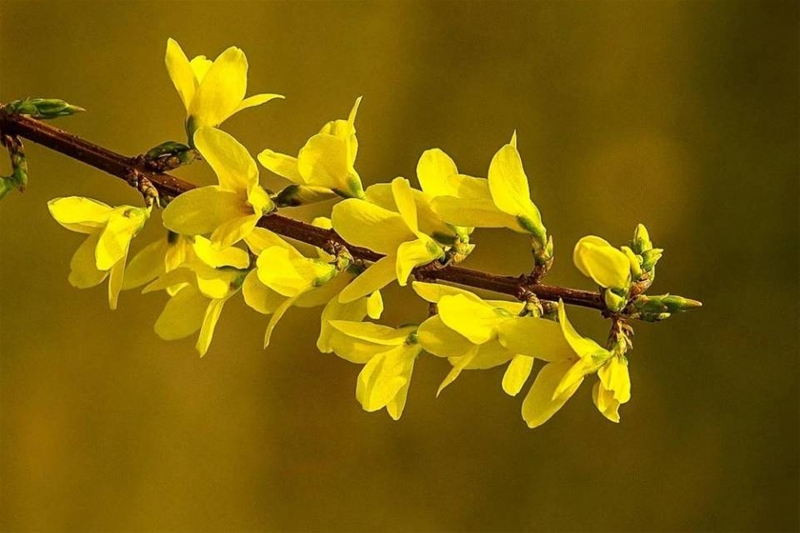 記憶中,每到春天,山上雪白的梨花、洋槐花,粉嫩的杏花、桃花,金黃的連翹花都爭相競放,像是在赴春的約,趕這場盛世花海宴,讓人沉醉其中。而連翹最為樸實(shí),它是一種落葉灌木,花開香氣迷人,生命力頑強(qiáng),或在陽坡上,或在田埂邊,或在大路兩旁,都能看見連翹頑強(qiáng)向上生長的身姿。連翹還可入中藥,具有清熱解毒,消腫散結(jié)的功效,因此,每到秋季,待連翹長出橢圓形果實(shí),我便跟著媽媽提著籃子上山采摘、曬干然后賣掉,雖然每次我都會被各種灌木絆倒甚至劃傷,但記憶里卻是我最開心的,因?yàn)檫B翹果實(shí)價(jià)好時一斤可以賣到七八塊錢,而我都會多摘一些,這樣就可以幫家里多一點(diǎn)收入。