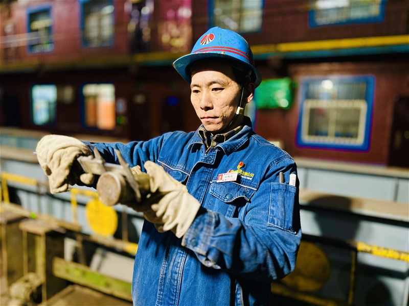 狹小且悶熱的設(shè)備縫隙里,維修工騰轉(zhuǎn)挪移、身形靈活。他們用割槍割除廢舊螺絲、對拉矯機冷鋼清理、對水油路進行疏通。現(xiàn)場48度的高溫下,一抹抹“勇士藍”在汗水中與時間賽跑,一頭汗水、滿臉笑容,是他們的真實寫照。