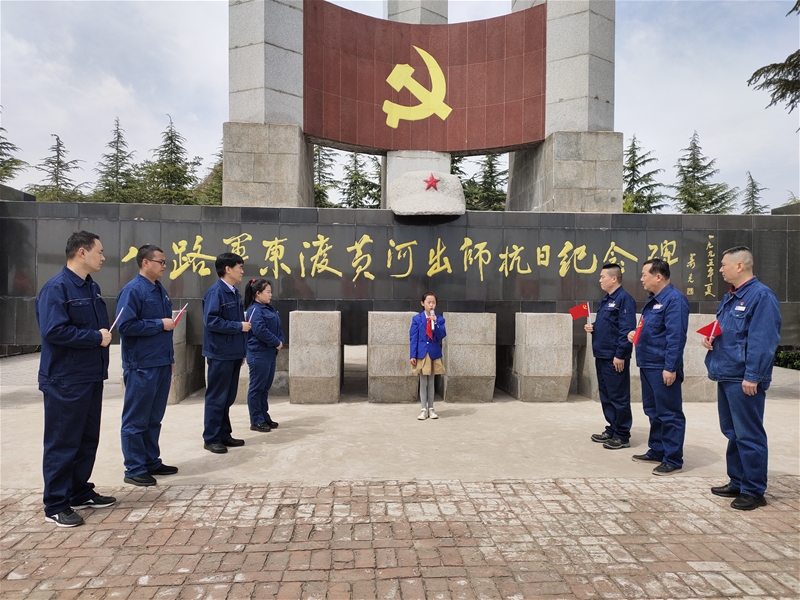 “八路軍115師1937年從這里東渡黃河,首開(kāi)八路軍抗日先河。今天我們來(lái)到這里,學(xué)習(xí)歷史,緬懷先烈……”在八路軍東渡黃河出師抗日紀(jì)念碑前,連一黨支部書(shū)記雷會(huì)林講道。