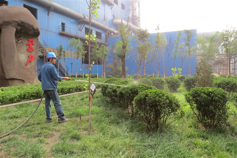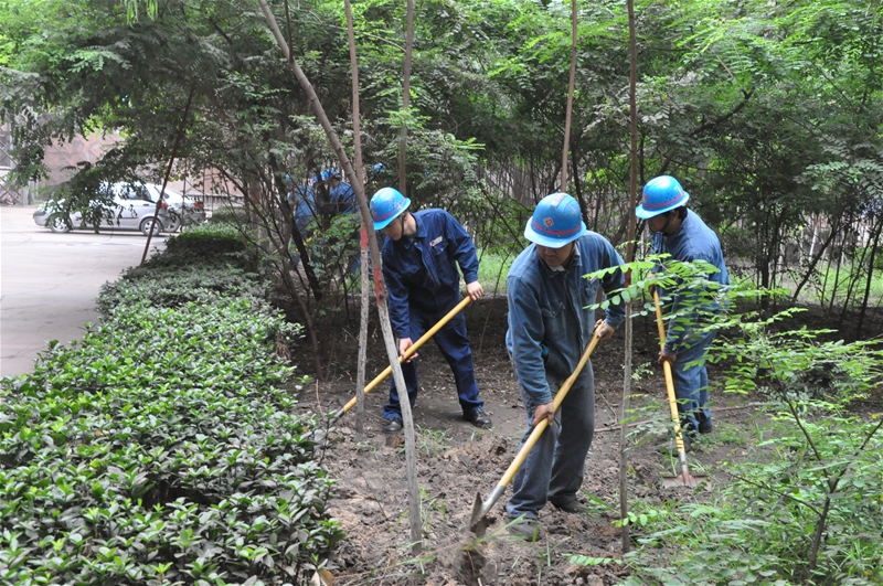 大膽成立綠化管護(hù)隊,專職管護(hù)綠植。針對該廠綠化面積廣的現(xiàn)狀,大膽創(chuàng)新,成立僅有7人的綠化管護(hù)隊,對廠區(qū)綠化帶雜物每天分時間段撿拾兩次并保潔,對廠區(qū)主干道綠化帶澆灌并沖洗葉面一次,每周對外圍綠化帶進(jìn)行深翻、澆灌兩次;每季度對冬青、樹木進(jìn)行修剪,同時做好適時、適度追肥工作。七人的工作可謂艱巨??!